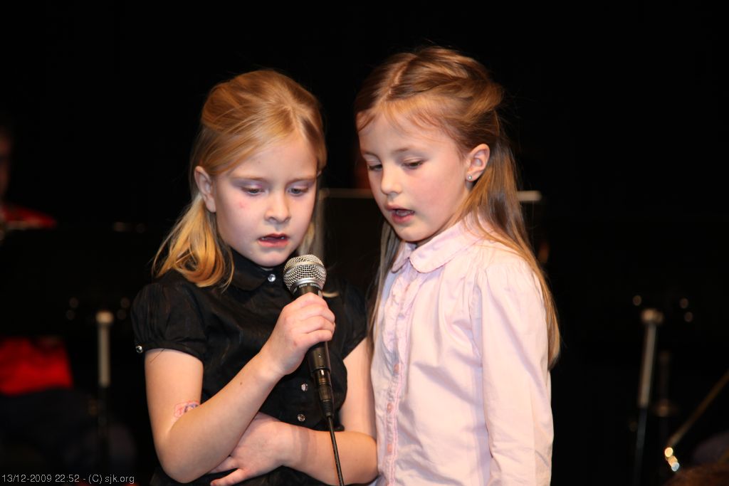 Karoline Gulliksen og venninen Silje var sangsolister på juletrefesten 2009.