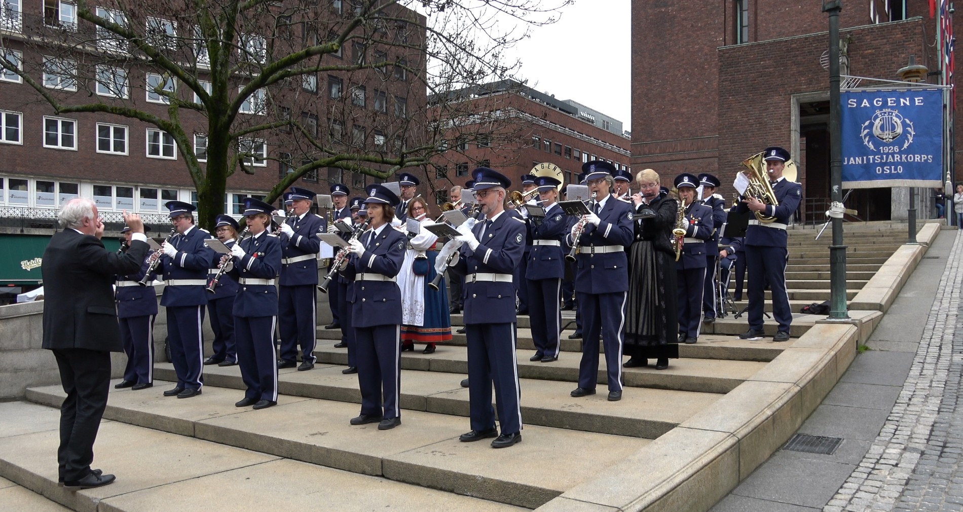 Sagene Janitsjarkorps holder sin tradisjonelle konsert ved Rådhuset etter barnetoget.