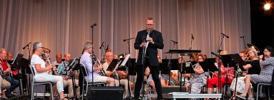 Vår gjestedirigent Morten Michelsen kunne mere enn å dirigere - han viste fram virtuost klarinettspill i flere "Klezmer" (jødisk tradisjon) inspirerte stykker