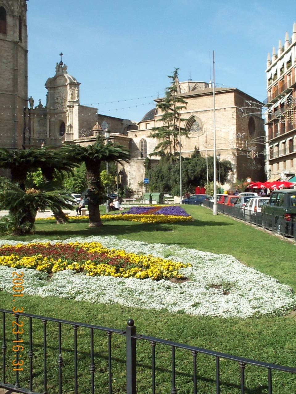 Byen blomstret etter en festival helgen før vårt besøk i mars. Her er plassen foran katedralen i gamlebyen.