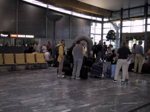 Alle hadde greid å stå opp tidlig og kommet seg til Gardermoen, og det var heller ingen problemer i innsjekkingen, og alle tre puljene med SJK folk kom avgårde i rute