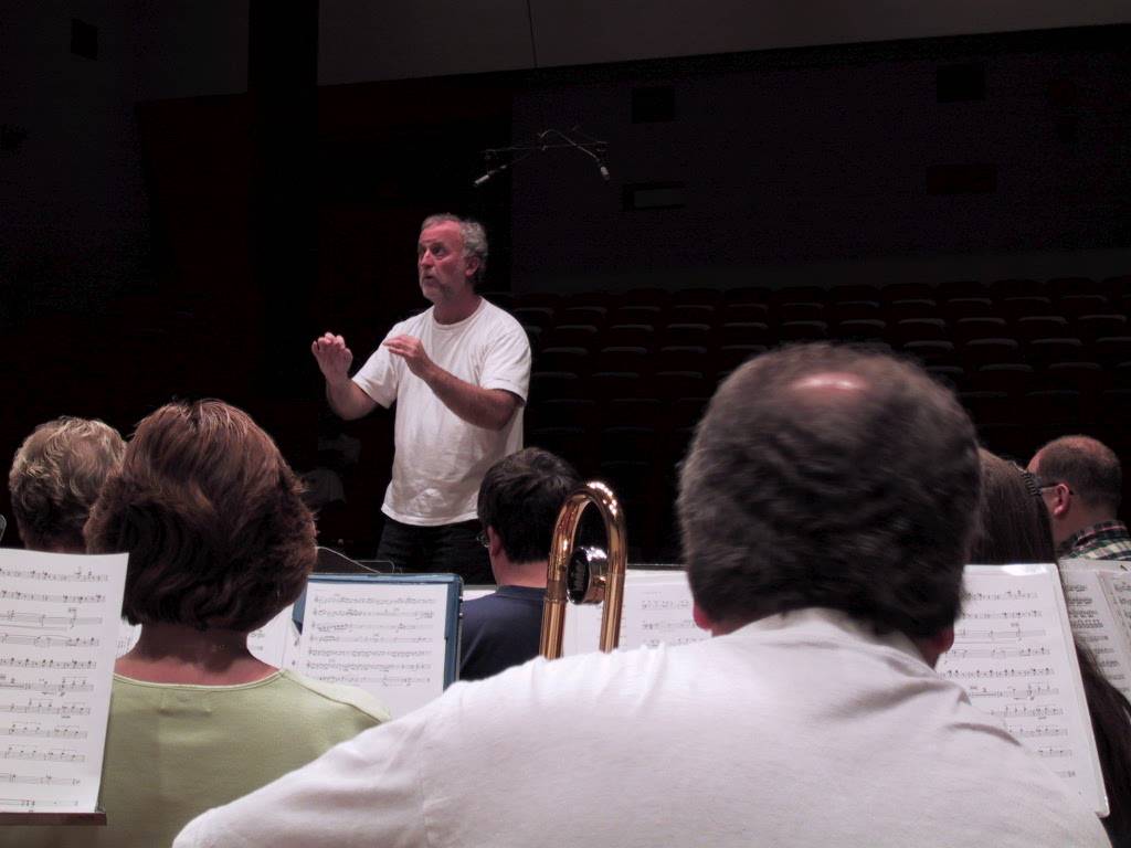Vi øver i sal B i musikkpaleet. Gjennomkjøringen av konkurransenumrene gikk fint og det er en god og forventningsfull stemning i korpset