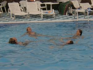 Her er Øyvind med sønnen Henrik - som storkoste seg i Valencia generelt og i bassenget spesielt