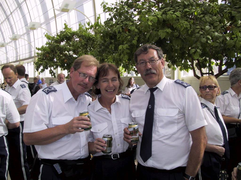 Vi er ferdige med innsatsen i konkurransen og er godt fornøyd. Her er deler av kornett/trompetrekka i gang med nedkjøings øvelser i vestibylen i musikkpaleet