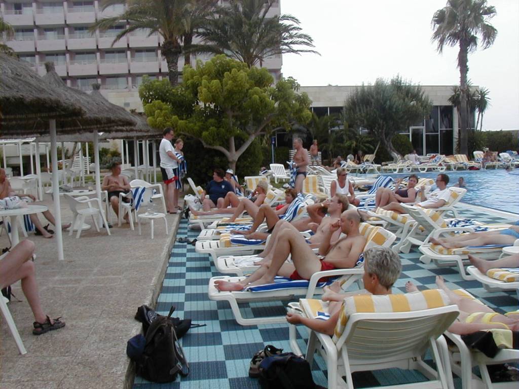 Poolen ved hotellet var mye i bruk, kanskje særlig av barnefamiliene. Mange syntes det var litt friskere å gå ned til stranden for å bade i havet