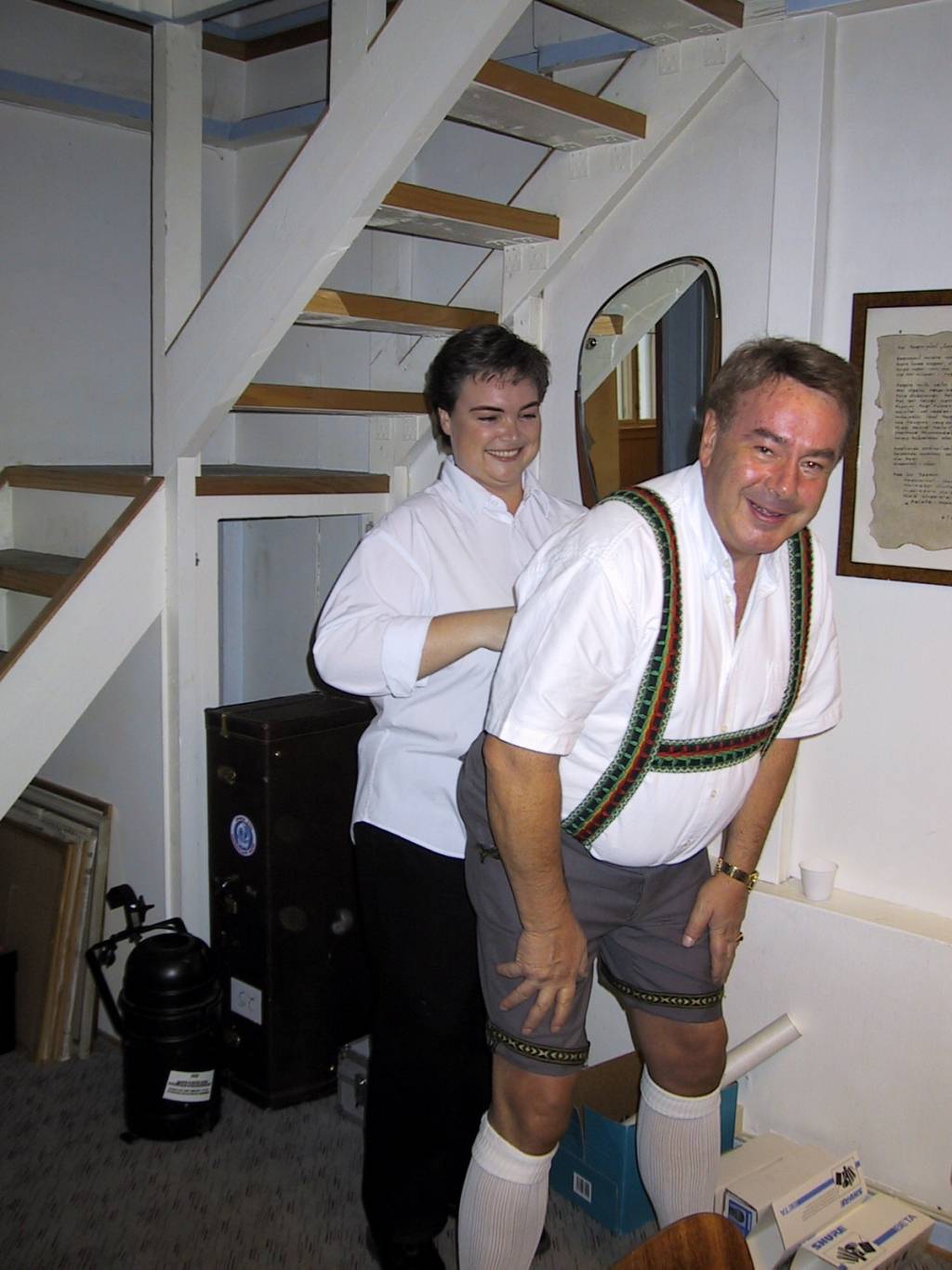 Türolerutstyret fra 70-tallet er ikke like enkelt å få på seg i 2001, Per trengte litt hjelp av Hanne