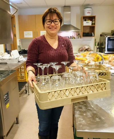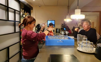 Ellen har betjent en industrioppvaskmaskin før, og tro til som ekstrahjelp for vår vennlige bartender - mot at han holdt utvidet åpningstid for oss. Vi håper han fikk prosenter av omsetningen disse dagene!