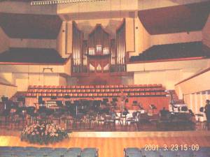 Her skal vi sitte! Arild tester akustikken fra scenen i Palau de la Musica.