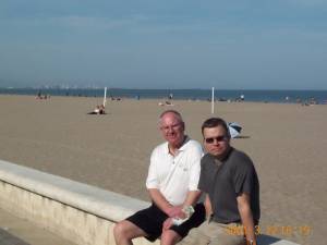 Turoperatør Reidar Dieserud og Senor Arildo tar en hvil på strandpromenaden i Valencia "sentrum".