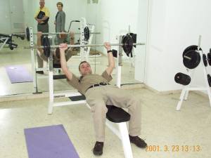 På hotell Sidi Saler begynte Arildo å tenke på bikinisesongen. Her under kyndig veiledning av turoperatør Reidar Dieserud og vår finske vertinne.