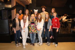 Ti unge musikere hadde takket ja til invitasjonen om seminarhelg sammen med Sagene Janitsjarkorps. Her sammen med instruktør Tine Thing Helseth etter vel gjennomført konsert søndag ettermiddag. Øverst fra venstre: Gustavo, Ingvild, Sunniva, Ole Bendik, Ragnhild. Nede fra venstre: Kamilla, Anna, Tine, Elin, Mina, Eirik
