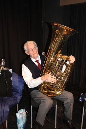 Æresmedlem Kjell Bjørn Pedersen med tubaen på Veterankorpsets julekonsert.