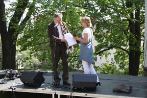 Tom Skjellum ble tildelt årets Lovisapris i bydel Sagene. Siden Tom var på reise med orkesteret ble det Janne som på vegne av han tok i mot prisen. Øyvind Hartmann og bydelsleder Per Overrein overrakte prisen for Sagene bydel.