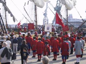 Mange flotte seilskip deltar hvert år, her var det en russisk deltaker som kom til kai med kongen og hans følge ombord ......