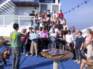 Hjemturen søndag gikk i solskinn og "flatt gulv" så når koret avsluttet sin dekkskonsert med "Så skimrande var aldri havet" så var en vellykket SJK helg slutt
