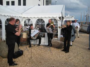 Kvintetten holdt en liten utekonsert utenfor "ølteltet" Hvita Ørn. SJK supportere sørget for jubel og applaus :-)
