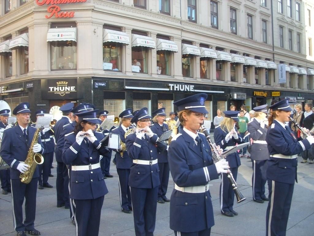 <p>Masse mennesker i byen da Sagene, i solskinn og fint høstvær, hadde sin siste opptreden ute i gata dette året. Marsjruta gikk fra Domkirken, opp Karl Johan til Egertorget. Videre til paviljongen utenfor Nasjonalteateret, derfra til Aker Brygge og en rask tur tilbake til paviljongen. I tillegg til at det ble spilt marsjer ble det også fremført light-musikk ved flere innlagte stopp underveis. Mange blide mennesker å se og et ukjent antall bilder og videos ble knipset av folk langs ruta, mobilkamera har kommet for å bli <img src="../../js/tiny_mce/plugins/emotions/images/smiley-smile.gif" border="0" alt="Smile" title="Smile" width="18" height="18" /> Vi treffes på Karl Johan igjen i 2010.</p><p>bona</p>