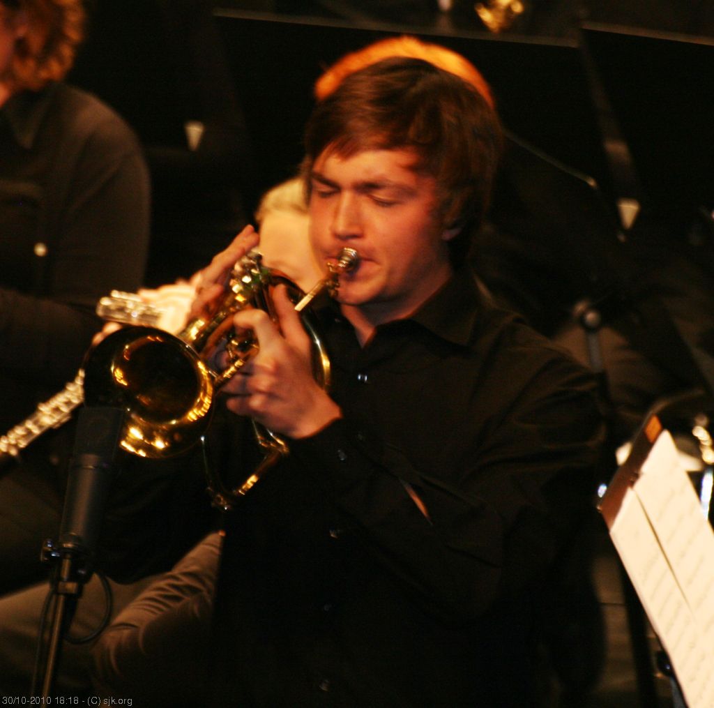Korpset hadde også egen solist - nemlig Morten Stang Koppang på flygelhorn. Hans eminente jazz improvisasjoner på to av satsene krydret stykket på en utsøkt måte, og dette ga ham da også kveldens solistpris!