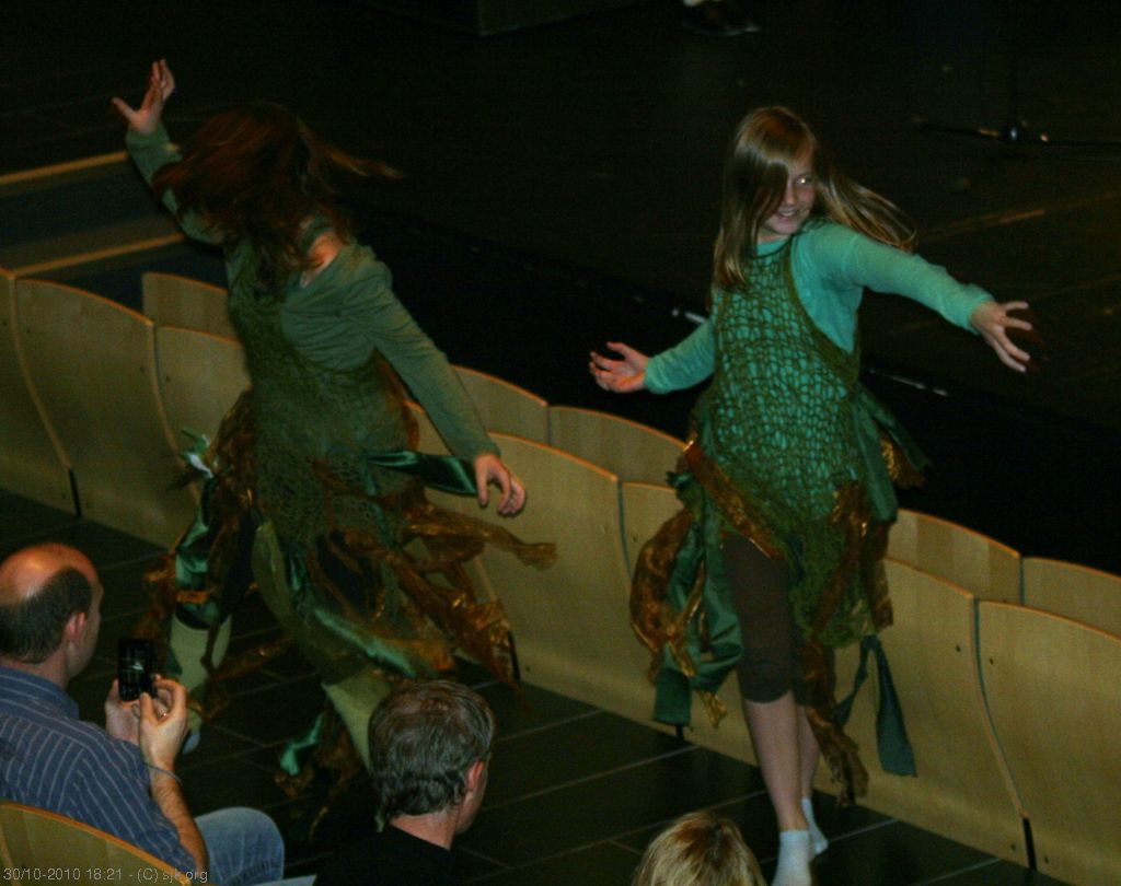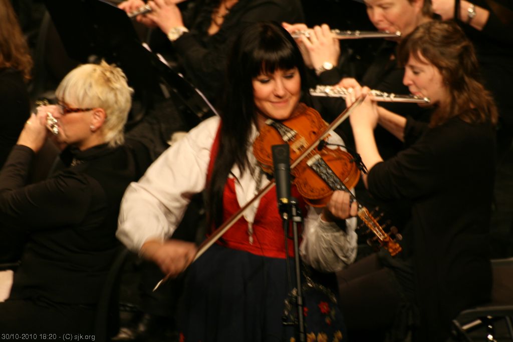 Med på stykket var også en solist på hardingfele og tre barn som danset huldredans og halling. Stykkets satser var bundet sammen med lydkulisser og bilder på storskjerm fra den mektige naturen i Vest-Jotunheimen.