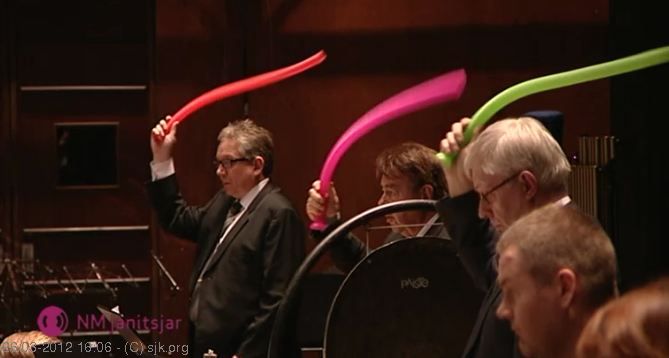 Vi er kjempestolte av dem! Noe av utstyret som ble benyttet i konkurransen var mer fargerikt enn det andre og lyden av plastrør som svingte seg i luften ga korpset en god start på fremføringen.