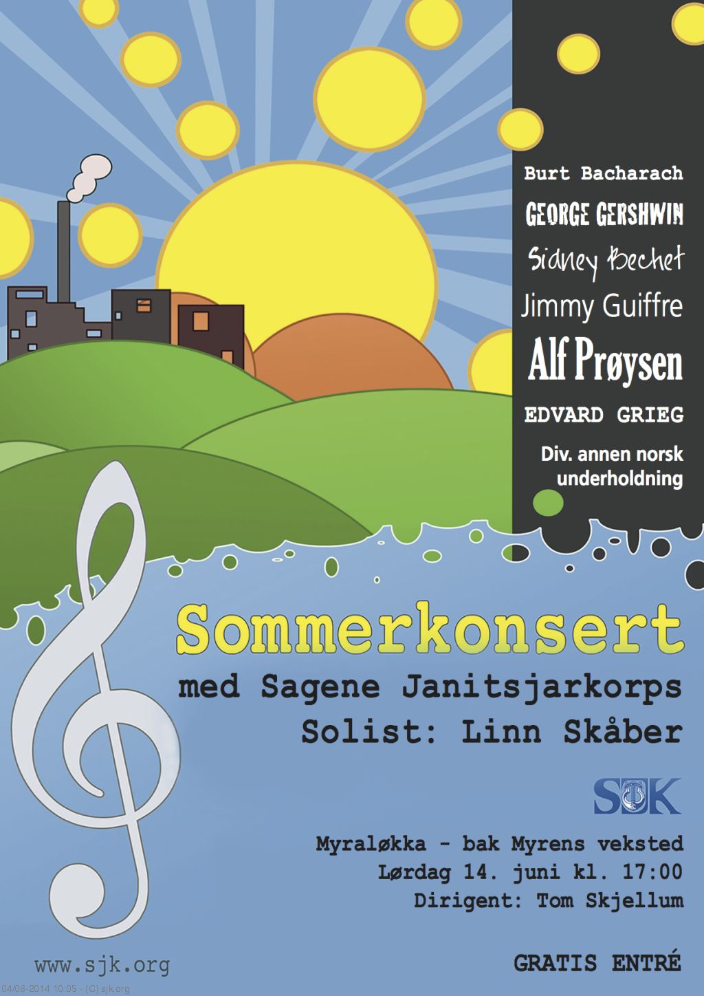 Hør god, underholdende musikk med et av Oslos beste janitsjarkorps. Ta med deg pledd, noe godt å drikke og kanskje en grill? Sett deg på plenen og la deg rive med når SJK og Linn Skåber lager god stemning!