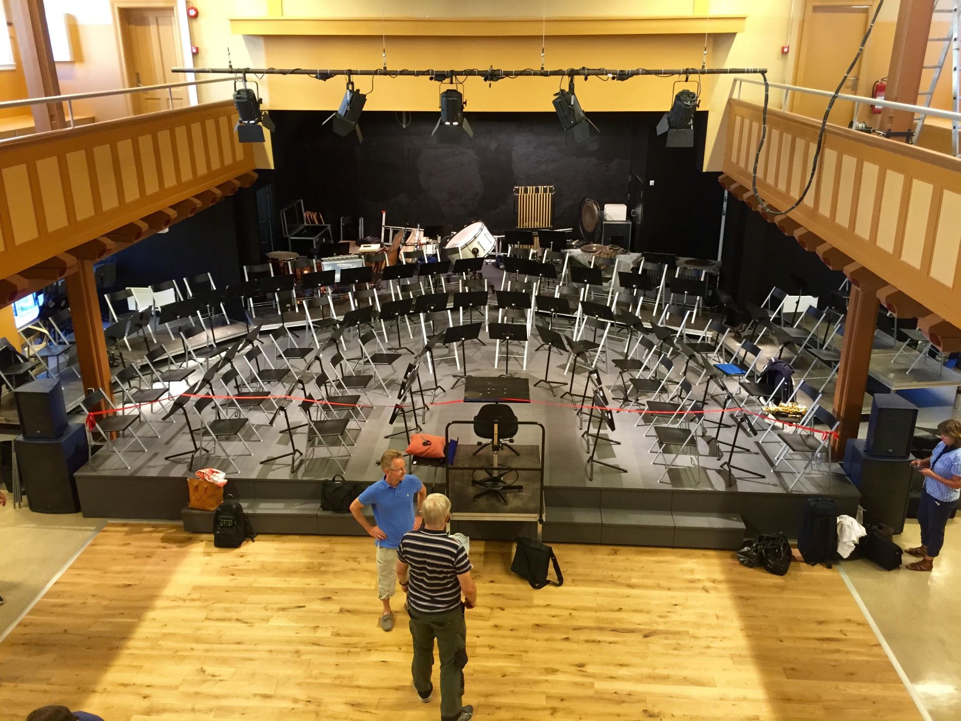 Vi hadde en liten symbolsk markering med kaker og sprudlende drikke på åpningsdagen, før vi satte oss på plass på scenen og kastet oss over "Year of the Dragon", stykket som benyttes som kvalifisering til 1. divisjon i NM. Dette skal vi ta opp og sende inn litt senere på høsten. Det var godt å være tilbake på våre gamle plasser, men etter så langt fravær tar det litt tid å venne seg til akustikken igjen. Her behøver vi ikke spille sterkt, det er helt sikkert.