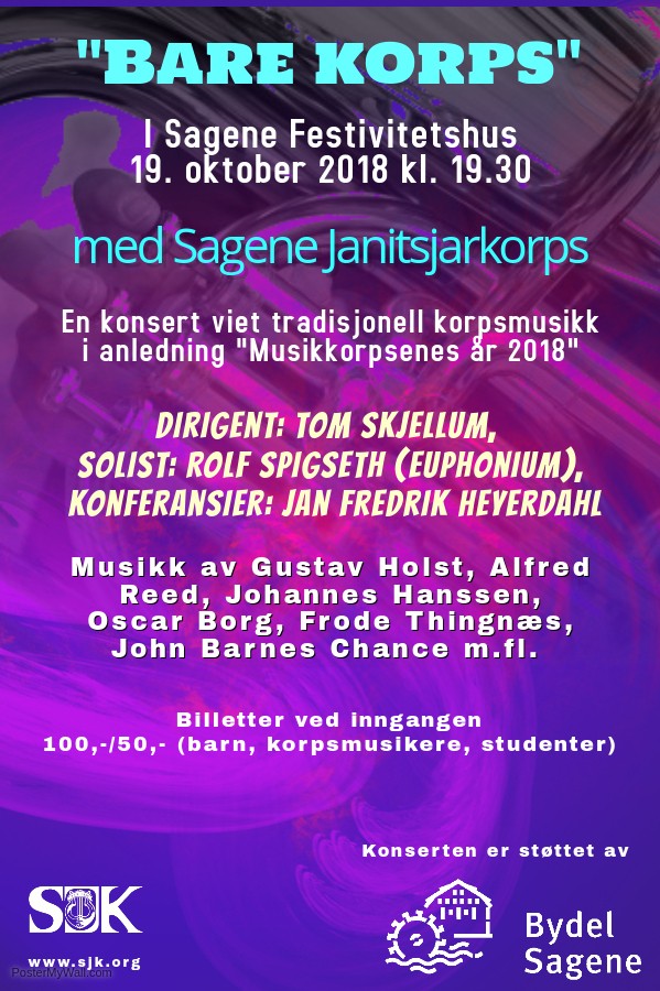 I skrivende stund er det snaut tre uker til høstens store konsert går av stabelen, og vi er i god rute med innøving. Temaet for konserten er kanskje ikke veldig originalt - nemlig korps - og vi har valgt å kalle konserten "Bare korps" i anledning at 2018 er musikkorpsenes år, samtidig som NMF har 100-års jubileum.