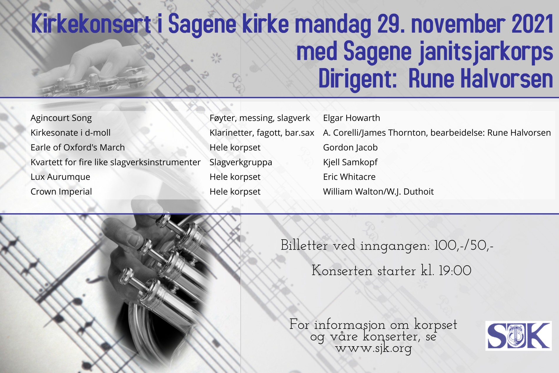 Sagene Janitsjarkorps inviterer til lyse og vakre toner i Sagene kirke den siste mandagen i november. Kammermusikk står på programmet, og både hele korpset og mindre instrumentgrupper vil framføre ulike verk.