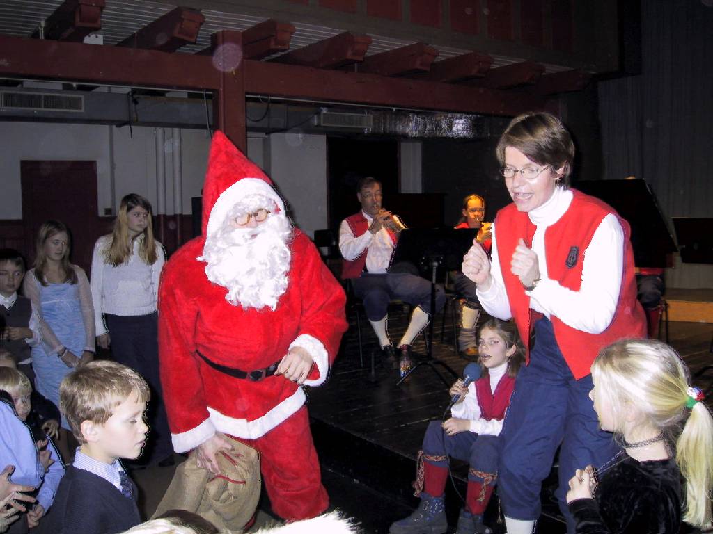 Etter en avdeling med tryllekunstner, begynte det å nærme seg det alle barna var kommet for, nemlig møtet med nissen! Og nissen kom, men det var en del fårete uttrykk å spore da det viste seg at nissens posesekk var tom. Nissen forklarte at han i år trengte hjelp med posene, og at en "nisseassistent" under opplæring var i anmarsj. Etter å ha ropt og ropt, dukket jammen assistenten opp med en tralle med poser - til stor begeistring hos barna. Poser ble delt ut mens orkesteret underholdt, og det var trygt å registrere at "nisseformen" til Sagene Janitsjar var på plass.